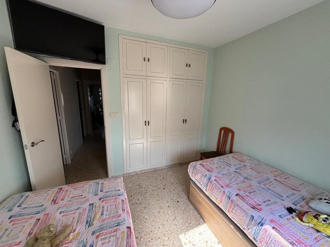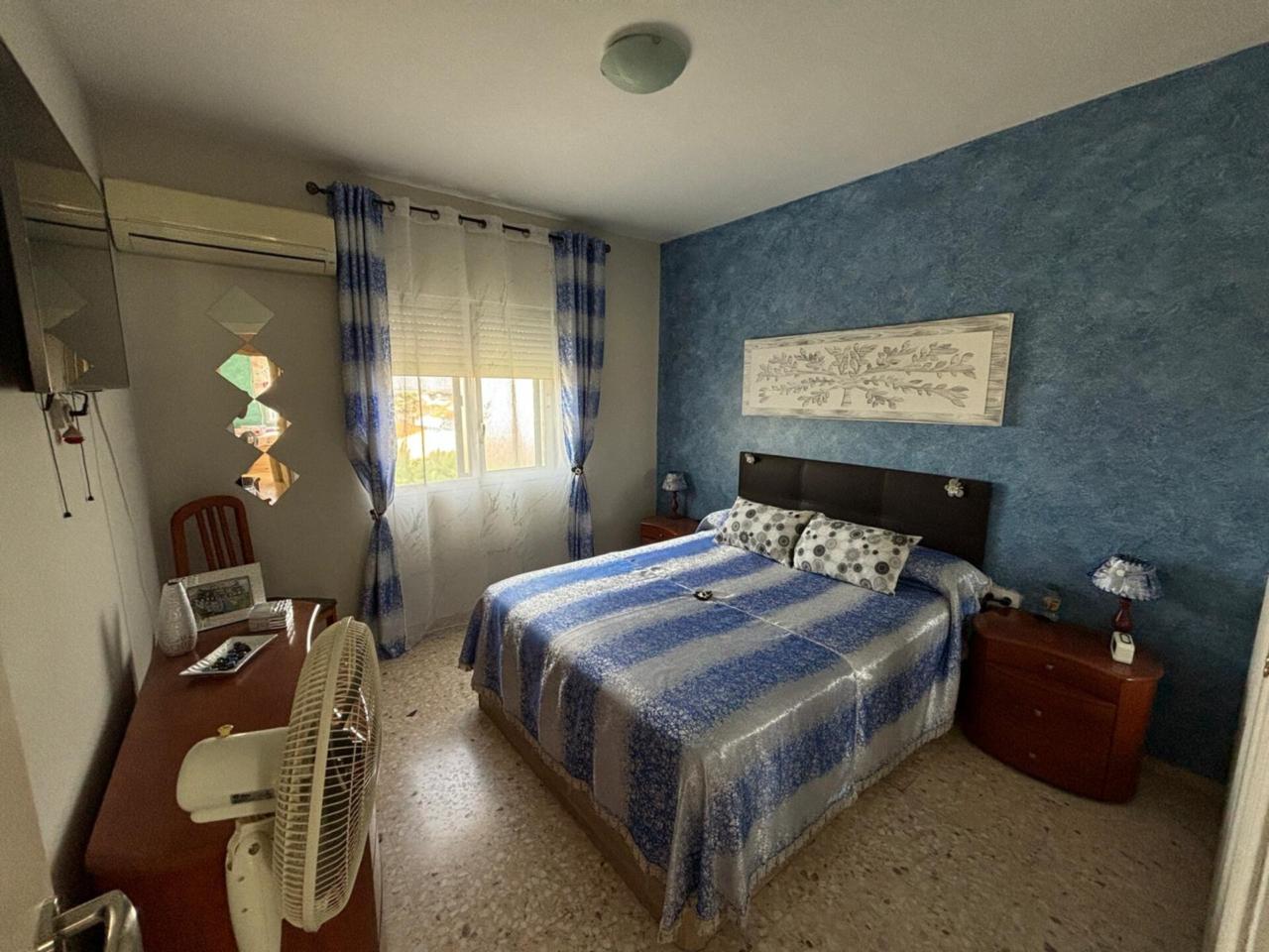 El dormitorio principal destaca por su doble armario empotrado y aire acondicionado, garantizando comodidad y espacio. Además, hay dos dormitorios dobles más, uno de ellos con armario empotrado, y una cuarta habitación que puede ser utilizada como dormitorio, despacho o vestidor según tus necesidades. El baño completo ha sido renovado con un plato y columna de ducha modernos.